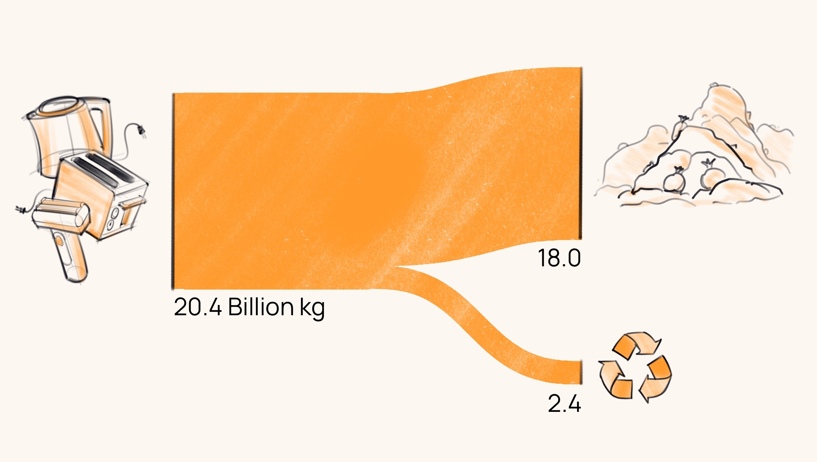 20.4 billion kg of small electrical appliances are thrown away yearly.