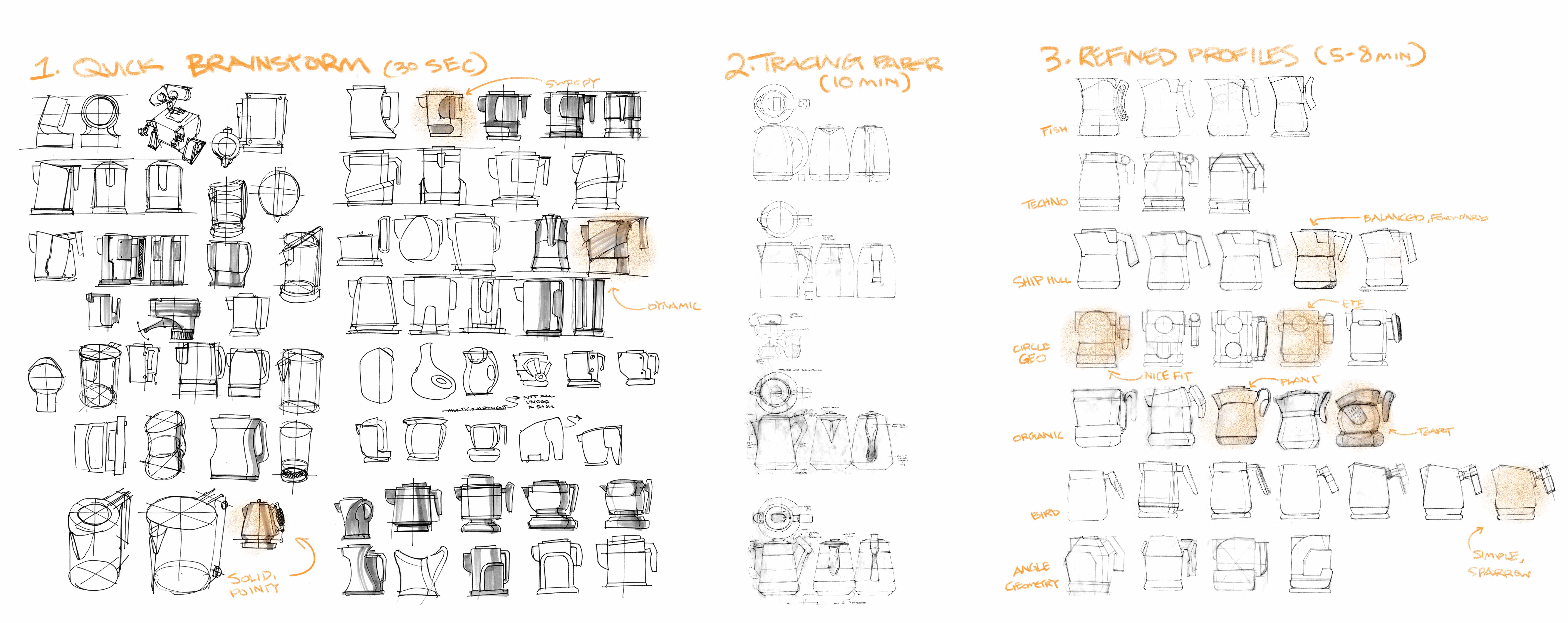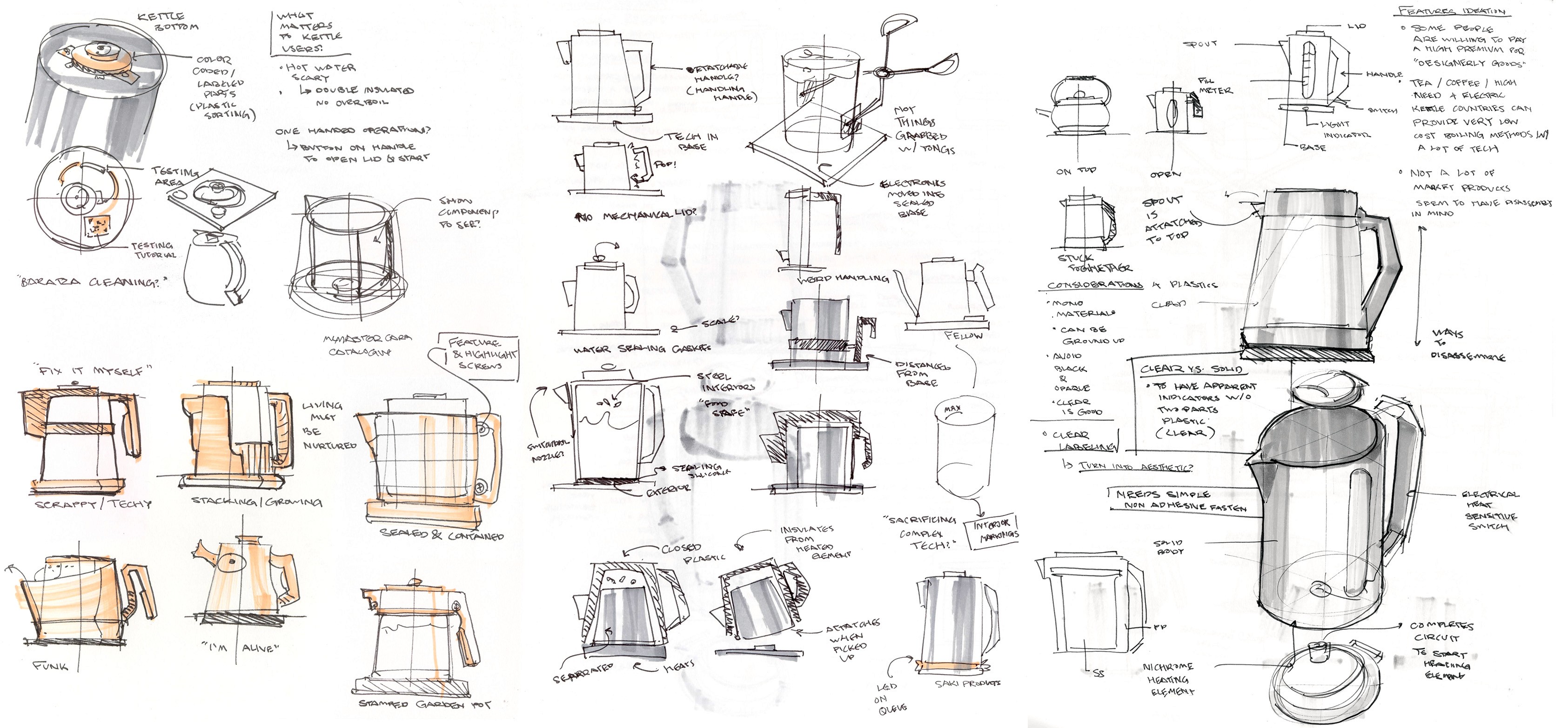 I initially constrained myself to the classical proportions of an electric kettle to promote realism. My final form broke away from that to take inspiration from traditional kettles.