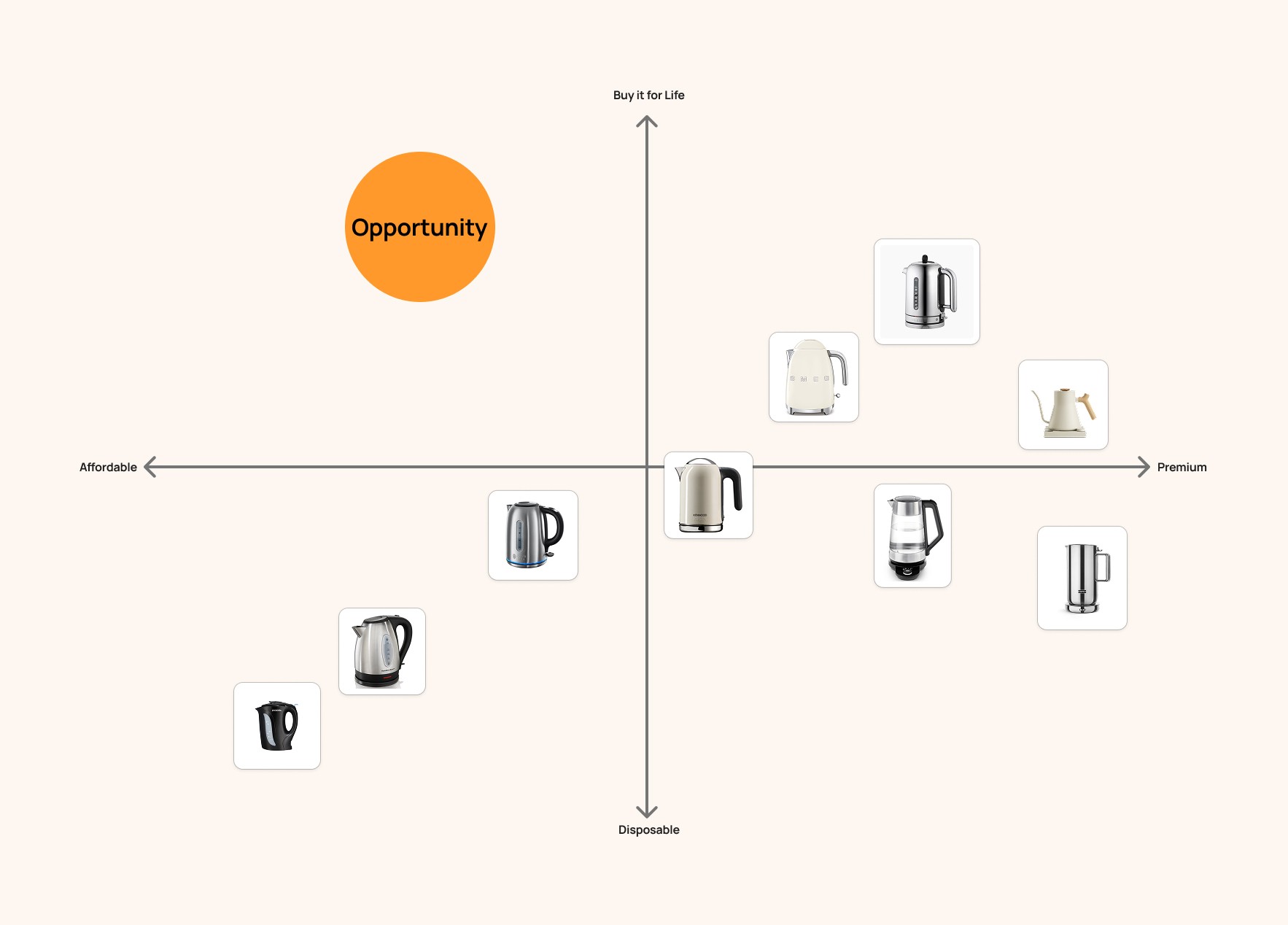 I mapped the global market and found an existing segment: well-designed, essential feature kettles.